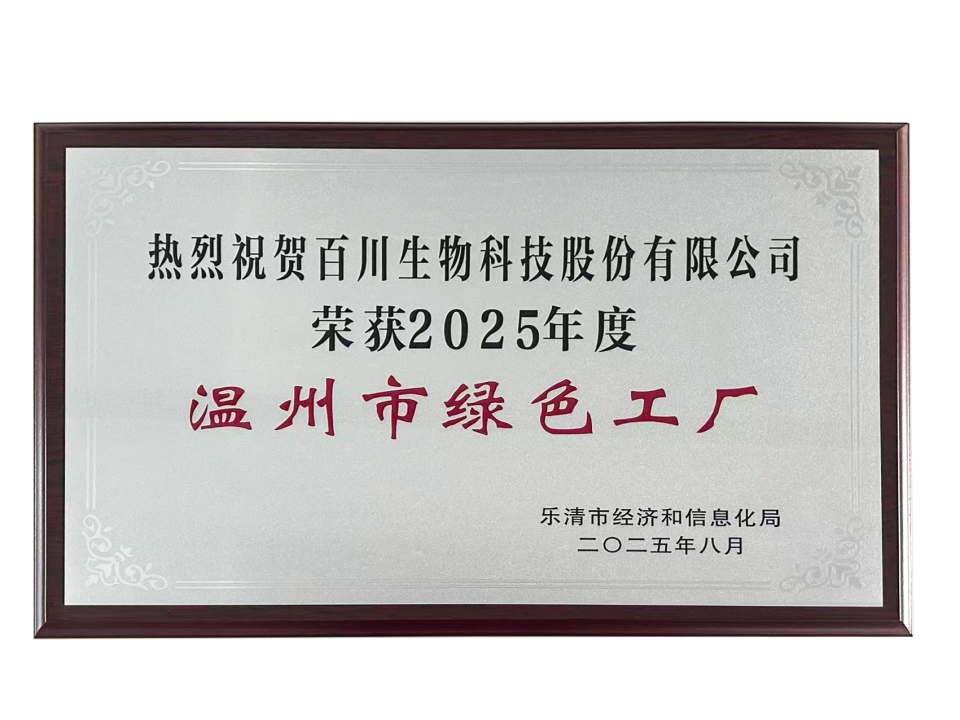 喜报!百川生物荣获温州市“绿色低碳工厂”称号
